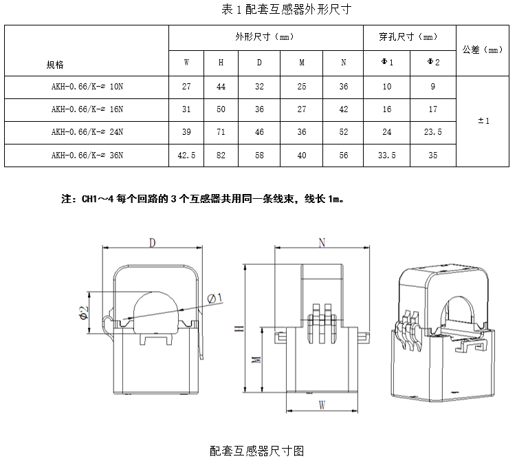 配套互感器外形尺寸: