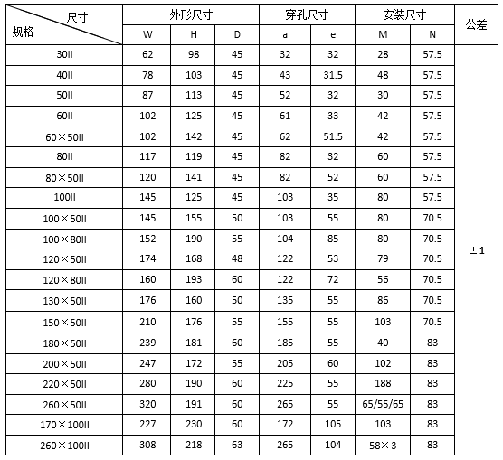 200×50Ⅱ 220×50Ⅱ 260×50Ⅱ |