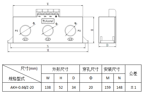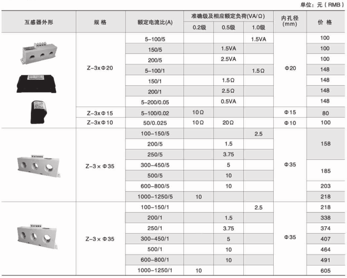 Z-3×Φ20 | 5-100/5A | 1.5VA | Φ20 | |