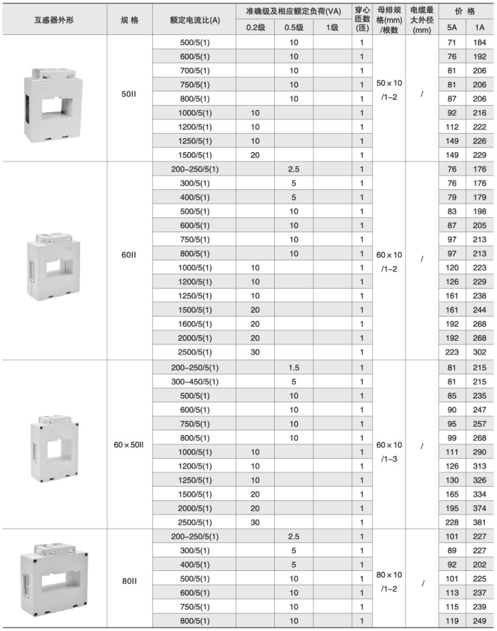 80×50Ⅱ | 200-250/5(1) | 2.5 | 1 | 80×10/ 1-3 | |||