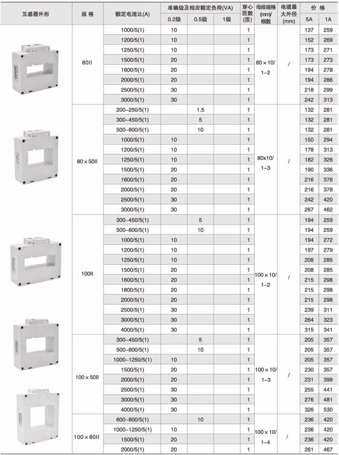 80I | 150/5(1) | 2.5 | 1 | 80×10/1 | Φ50 | A,C | ||