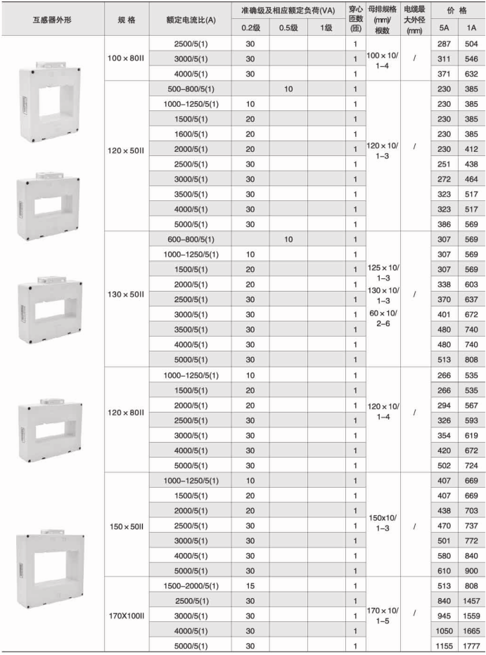 170×100Ⅱ | 1500-2000/5(1) | 15 | 1 | 170×10/1-3 100×10/3-6 | |||