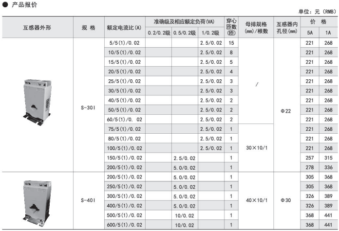 S-40I | 200/5(1)/0.02 | 5.0/0.02 | 1 | 40×10/1 | φ30 | C,F | ||