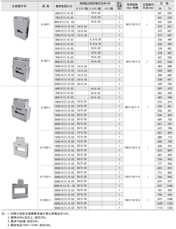 S-50Ⅱ | 600-800/5(1)/0.02 | 10/0.02 | 1 | 50×10/ 1-2 | / | B | ||