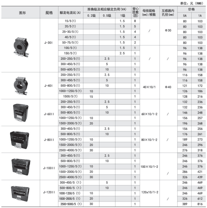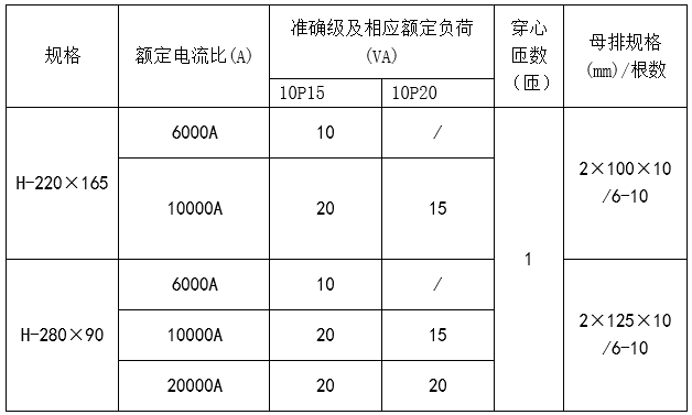 規(guī)格 | 額定電流比(A) | 準(zhǔn)確級 | 穿心匝數(shù) | 母排規(guī)格/根數(shù) | |