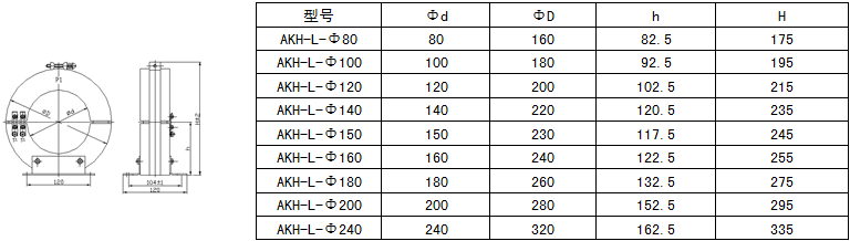 具體型號:AMZK52 150A/5A● AKH-L零序電流互感器