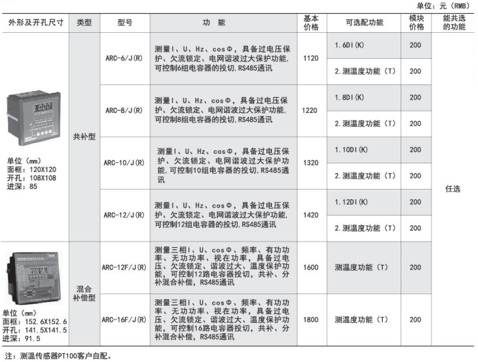 具體型號:ARC-6/J-KT共補型外形及尺寸