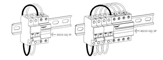 ASJ采用導(dǎo)軌安裝,直接安裝在35mmDIN導(dǎo)軌上,產(chǎn)品安裝接線示意圖如圖所示:操作說明: