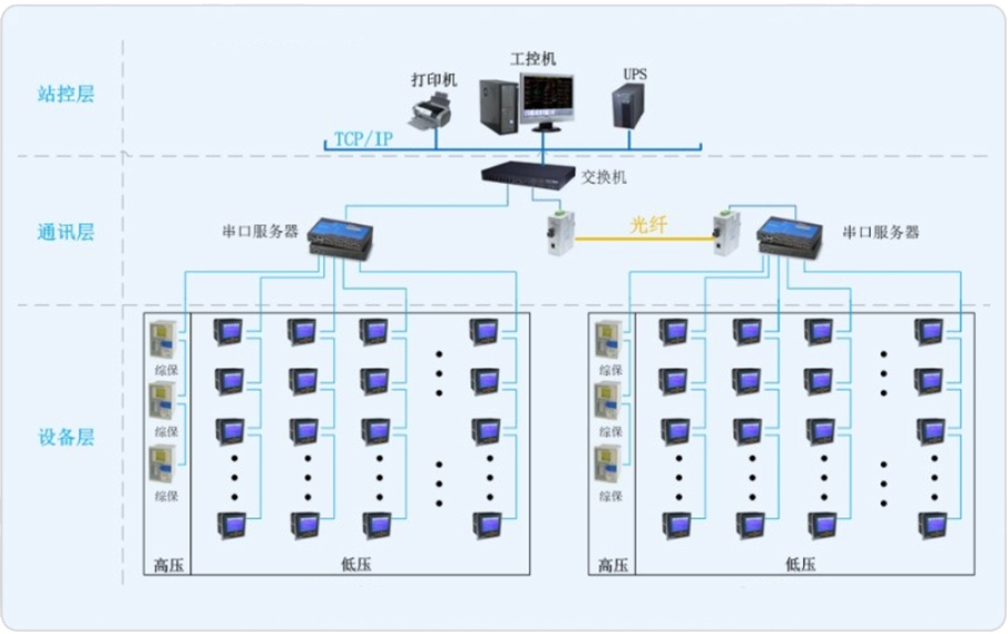 本系統(tǒng)主要監(jiān)測(cè)新建3.6萬(wàn)KL/年精品啤酒項(xiàng)目聯(lián)合車(chē)間,該車(chē)間共有2組變壓器。3臺(tái)AM5微機(jī)保護(hù)裝置,5只ACR330ELH、41只ACR120EL、4只PZ72L-AI3多功能電力儀表接入電能管理系統(tǒng)。通訊總線(xiàn)直接接入變電所內(nèi)串口服務(wù)器,從而儀表與監(jiān)控主機(jī)的數(shù)據(jù)連通。安科瑞電氣股份有限公司為其配置一套Acrel-3000電能管理系統(tǒng),實(shí)時(shí)監(jiān)測(cè)變電所內(nèi)各個(gè)回路的電流、電壓、功率、開(kāi)關(guān)狀態(tài)等電參量,由此達(dá)到變電所少人值守或無(wú)人值守的智能化管理。
