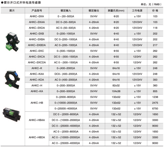 ● 開口式開環霍爾電流傳感器
